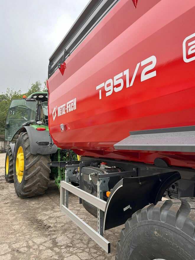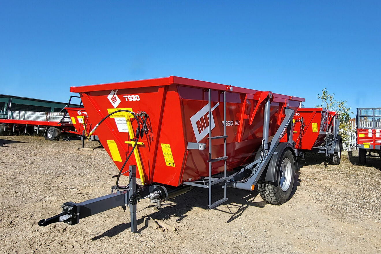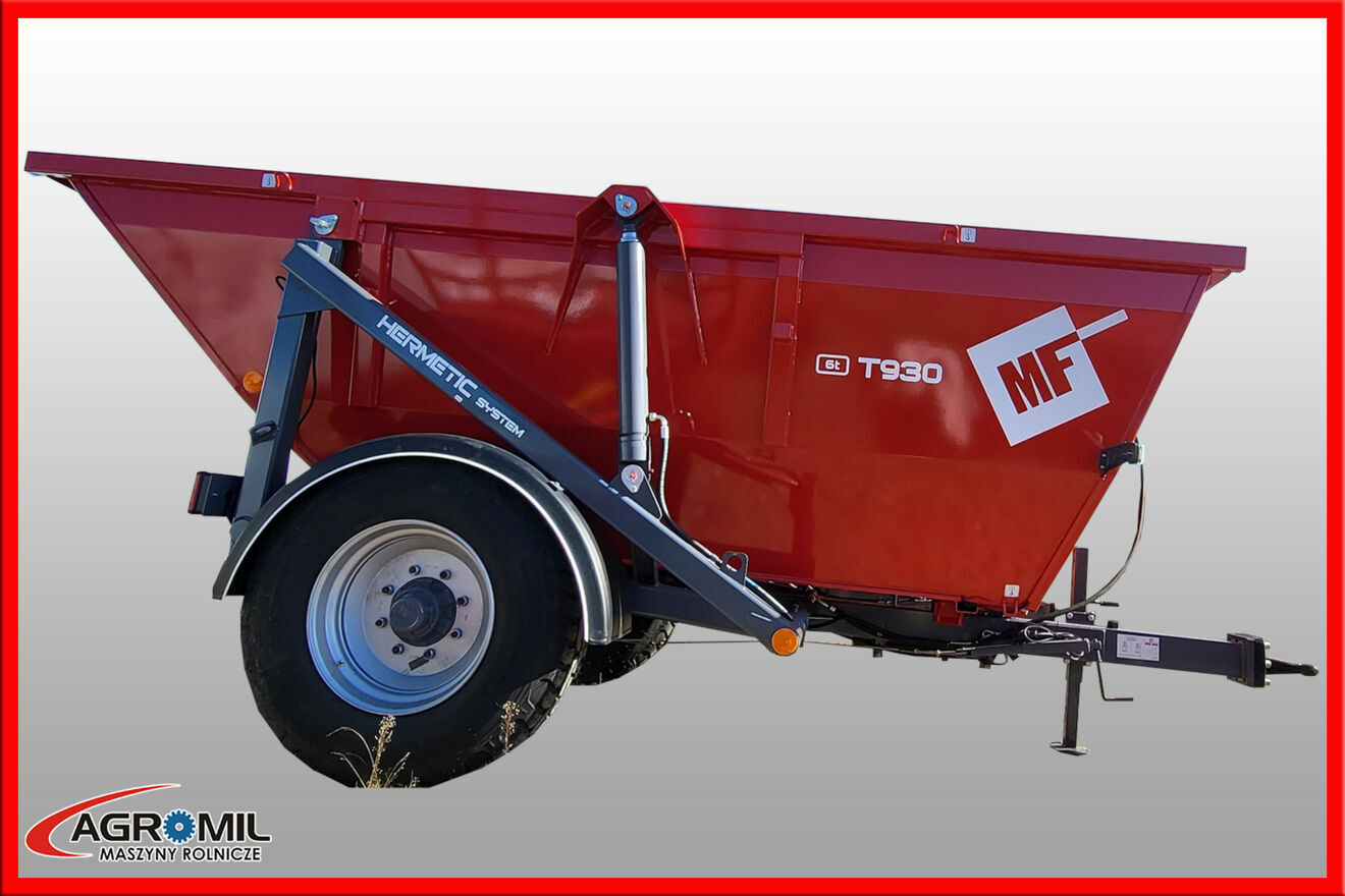 Praktyczna i niewielka przyczepa skorupowa T930 może transportować materiał o wadze nieprzekraczającej 6 ton. Przyczepa została zbudowana w oparciu o nadwozie typu koleba. Umożliwia jednostronny wywrót ? tylny, ale uwagę zwraca znaczny wychył ? niemal do kąta prostego. Rozładunek ? wychył jest wspomagany poprzez zainstalowane dwa trwałe siłowniki hydrauliczne. Maszyna została wyposażona w pełną instalację elektryczną umożliwiającą jej transport po drogach publicznych. Ogumienie 385/65 R22,5 zapewnia możliwość bezpieczną pracę w terenach podmokłych i torfowych. Sprzęt został wyposażony w jednoosiowy układ jezdny, hamulec pneumatyczny i mechaniczną stopkę podporową. Przyczepa posiada również hamulec postojowy uruchamiany manualnie.p. Typ T930